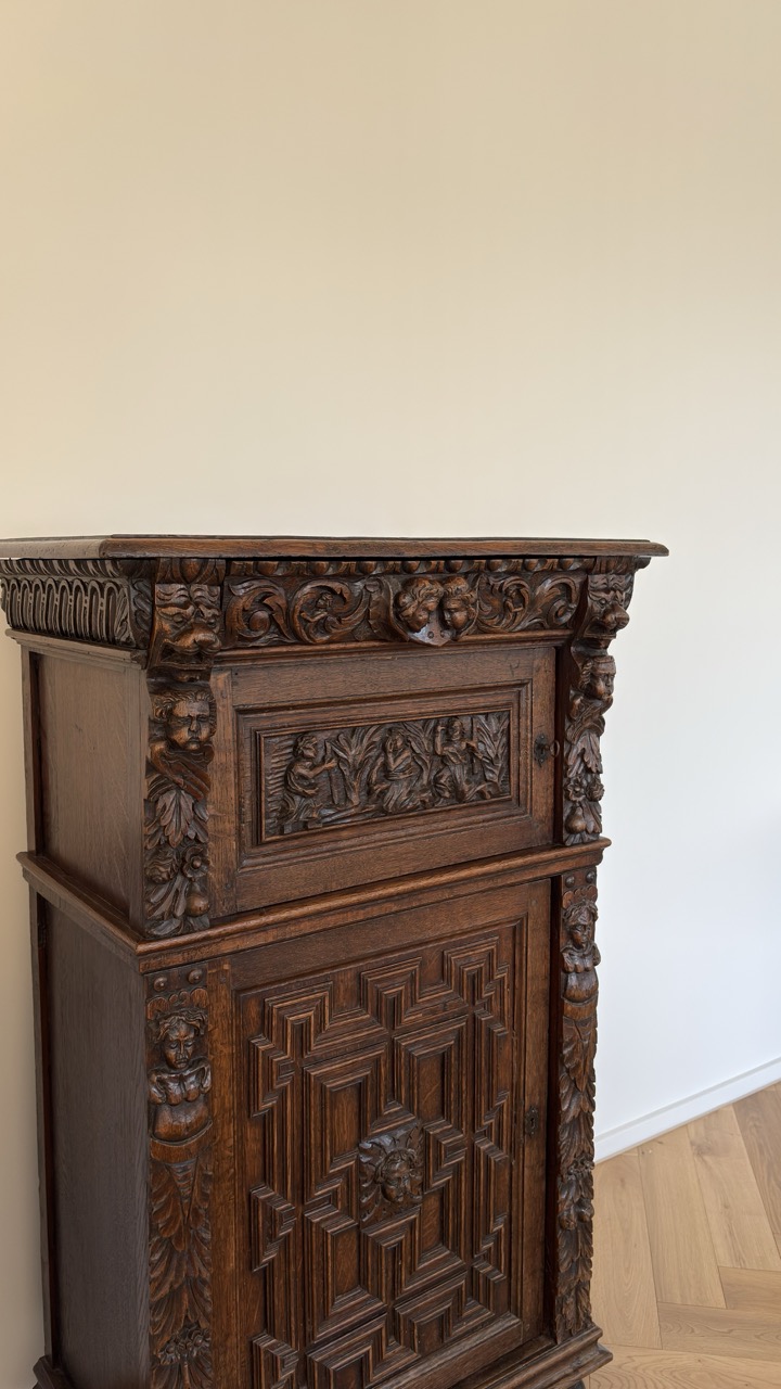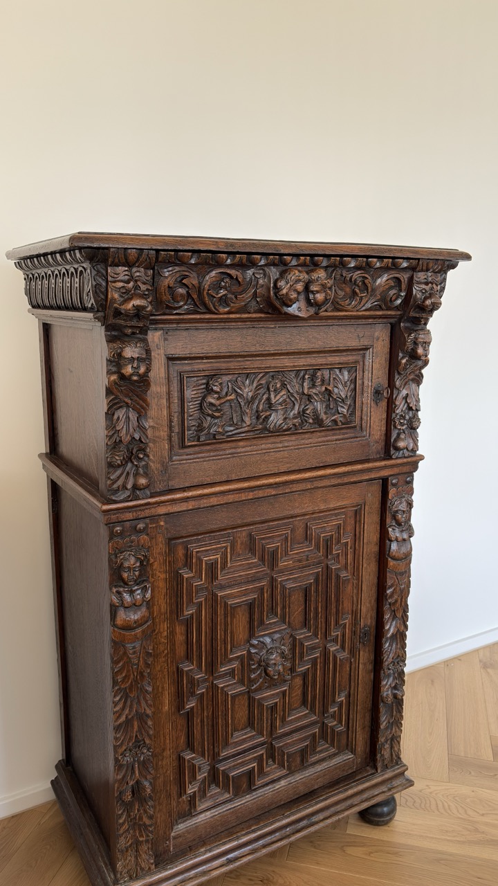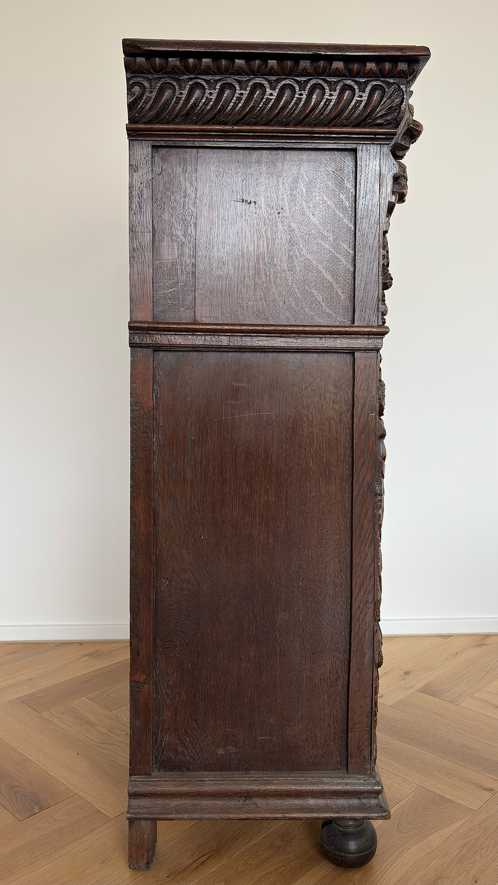 19th C. with 17th C. elements carved oak cupboard – Flanders