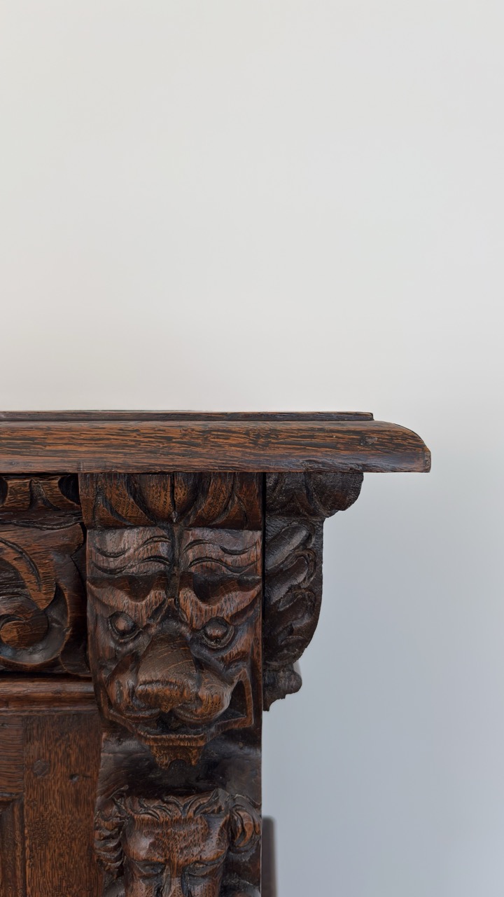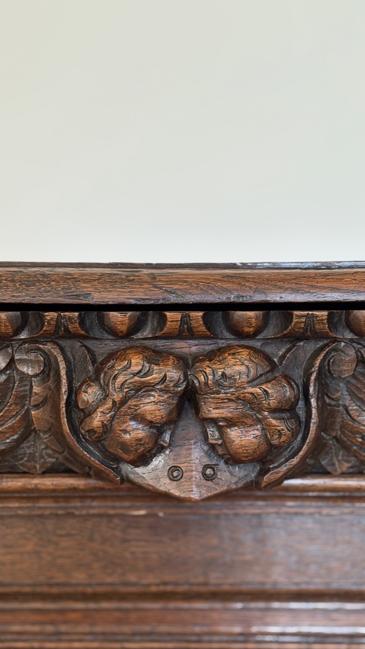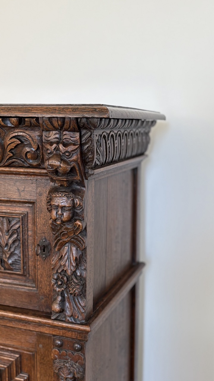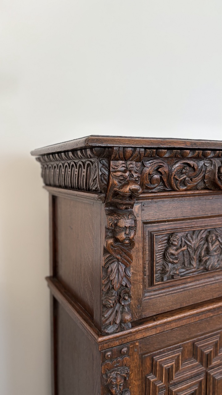 19th C. with 17th C. elements carved oak cupboard – Flanders